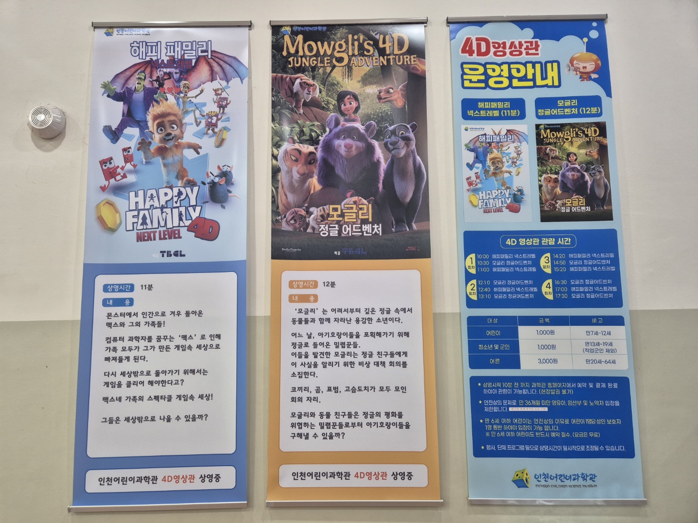 인천 어린이과학관 입장료와 4D 영상관 금액 (개인)