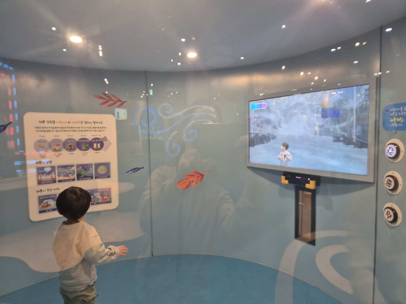여기서는 그나마 가장 재미있어 했던 건 태풍체험이었어요.