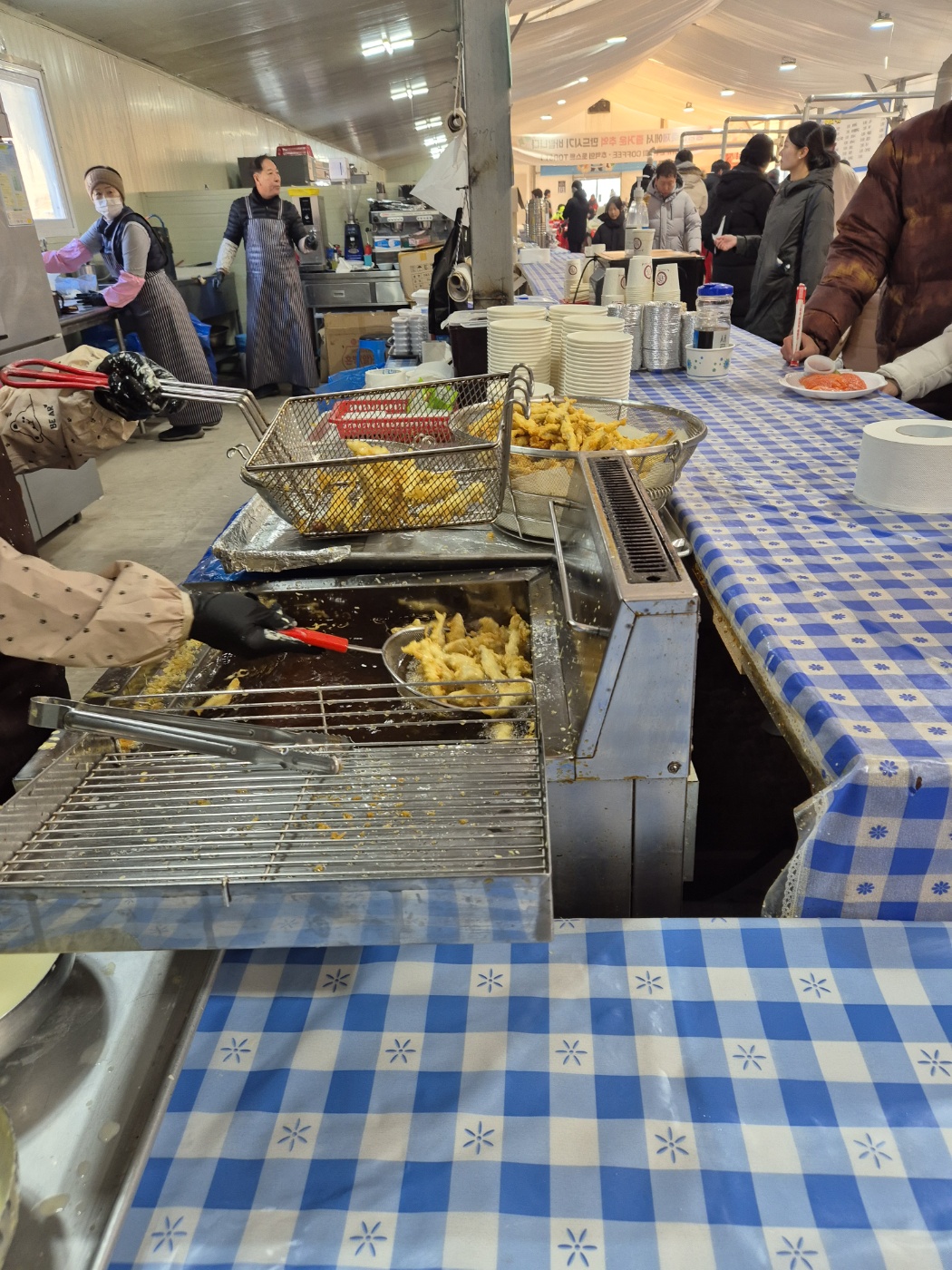 안에 분식이나 식사 종류도 있고, 옆 비닐 하우스에는 고기도 먹을 수 있어서 점심식사 해결하기에 좋았어요~
