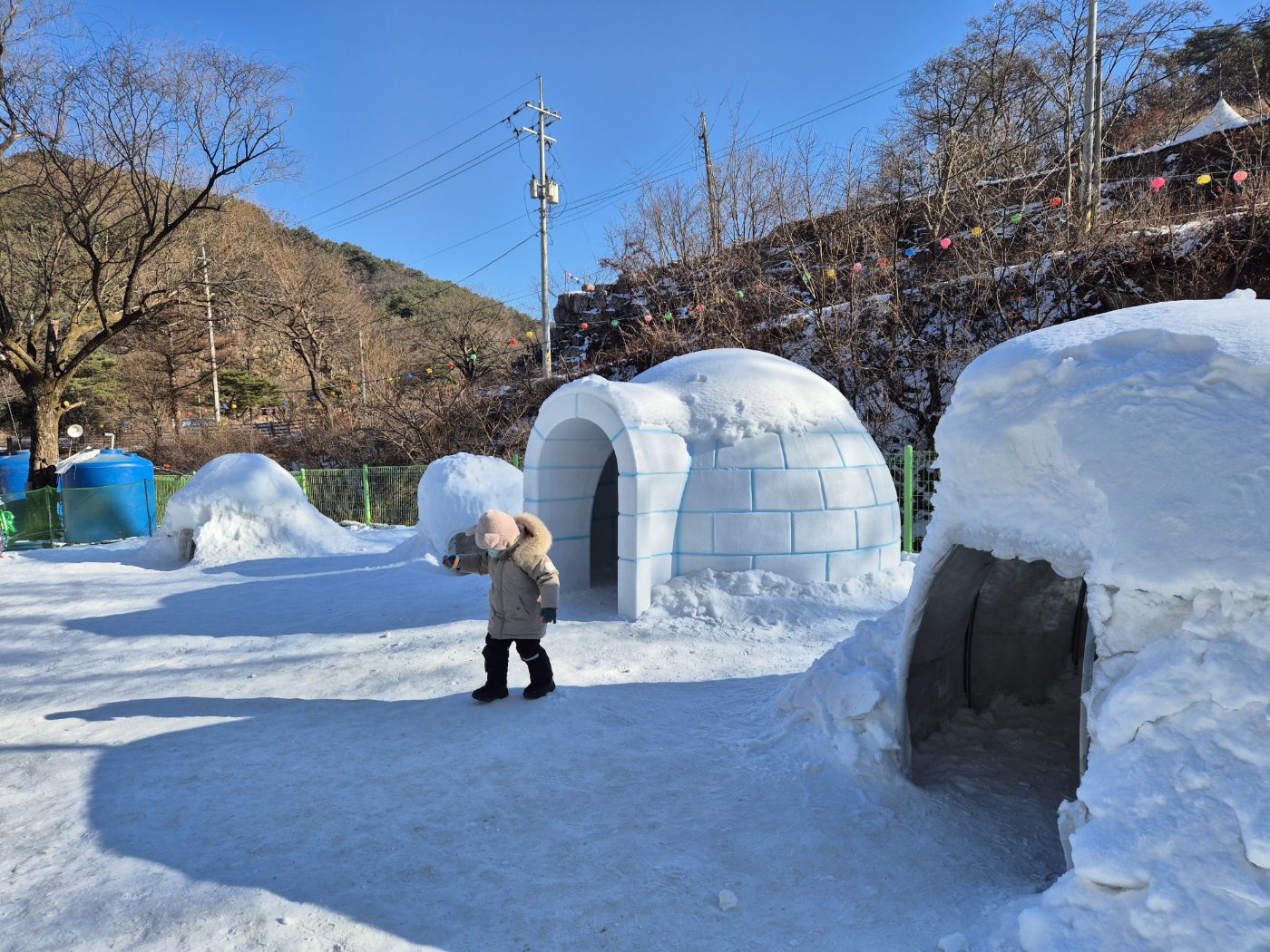 썰매타고 내려오는 길에 있는 이글루 체험도 해봅니다.