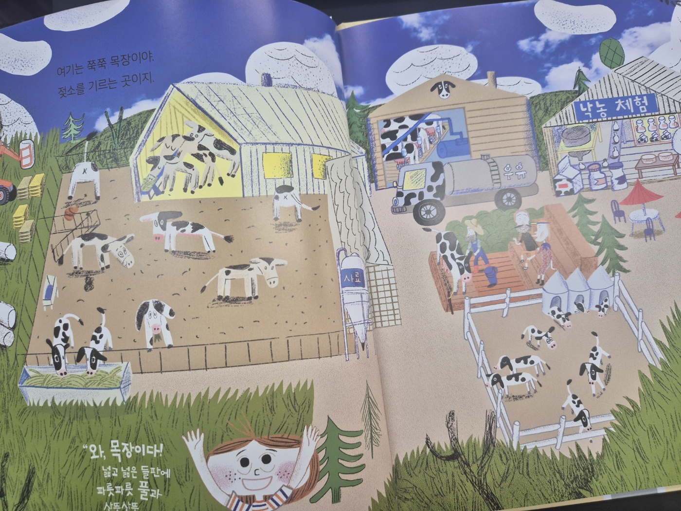 젖소가 살고 있는 목장에 가서 우유짜기 체험을 해보는 내용인데,
