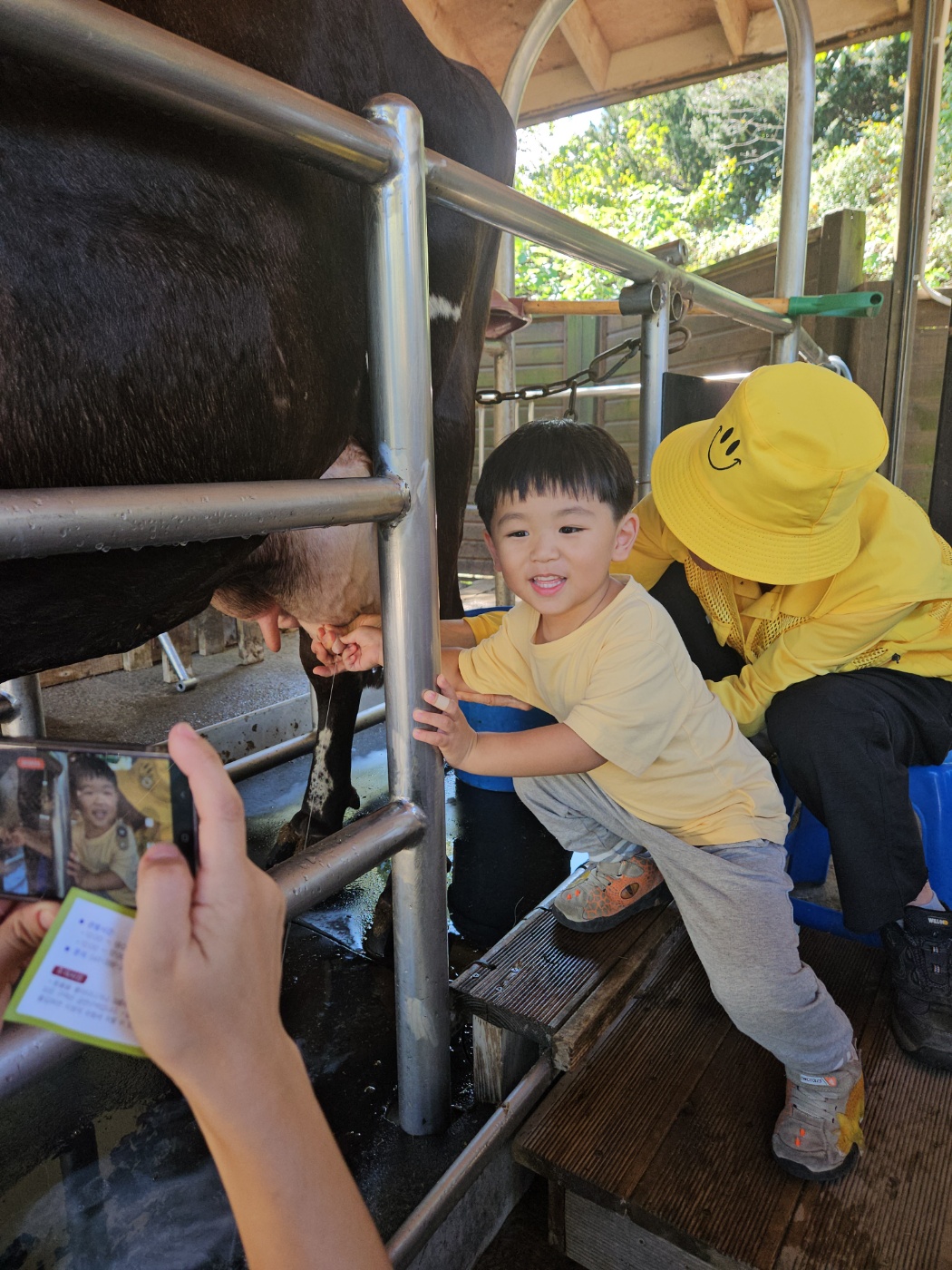 저희는 워낙 젖소 우유짜기 한다고 왔던 터라 제일 먼저 소젖짜기 체험부터 진행했어요~