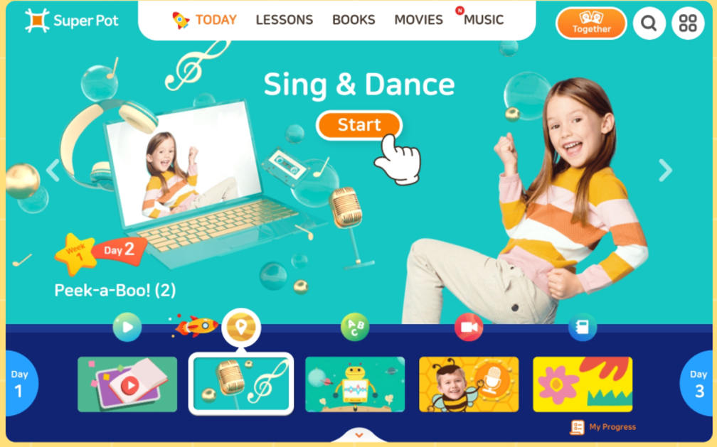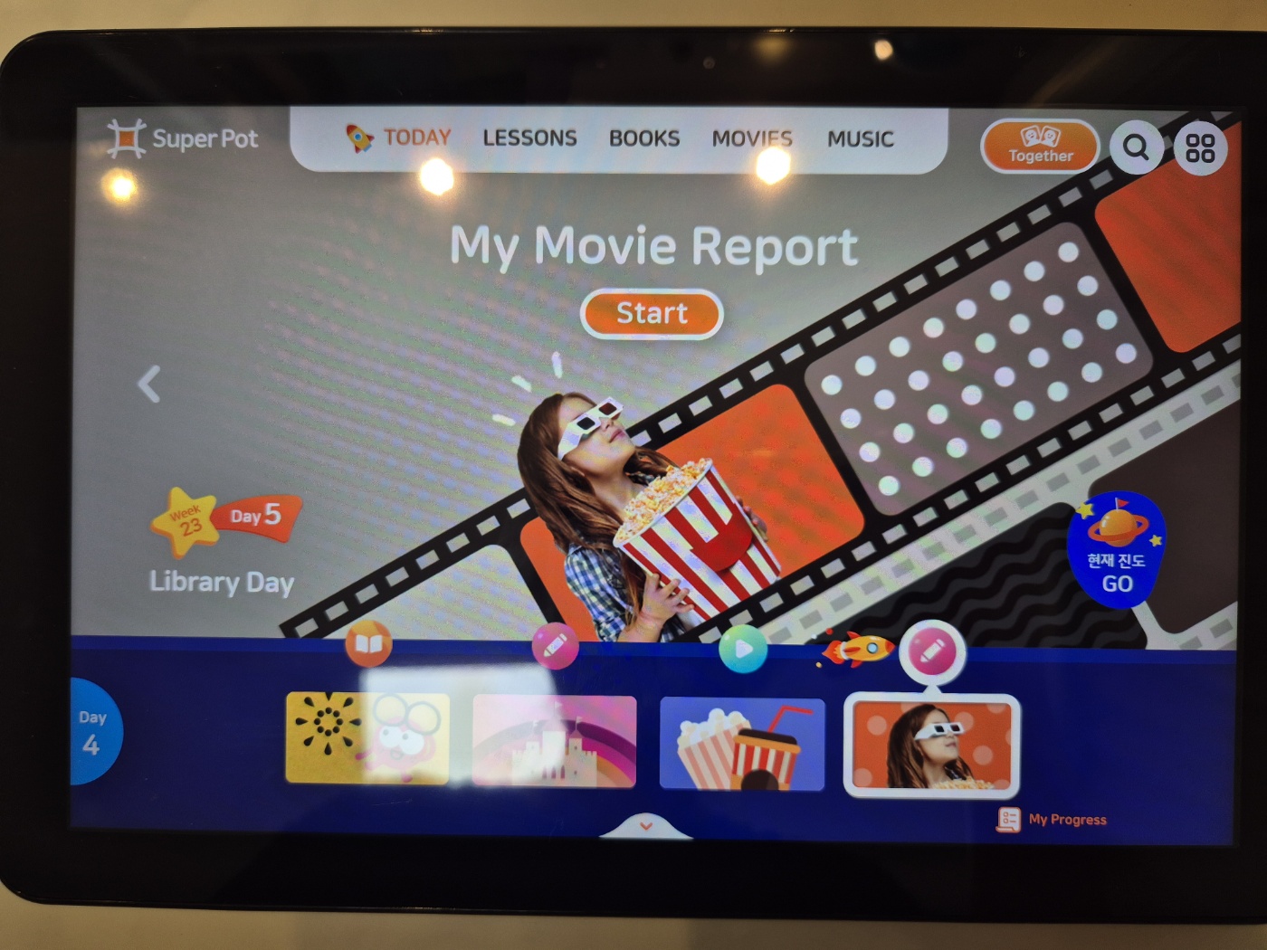 슈퍼팟 잉글리시는 투게더 수업이라는 것도 있어서 선생님과 화상수업도 진행할 수 있기는 합니다.
