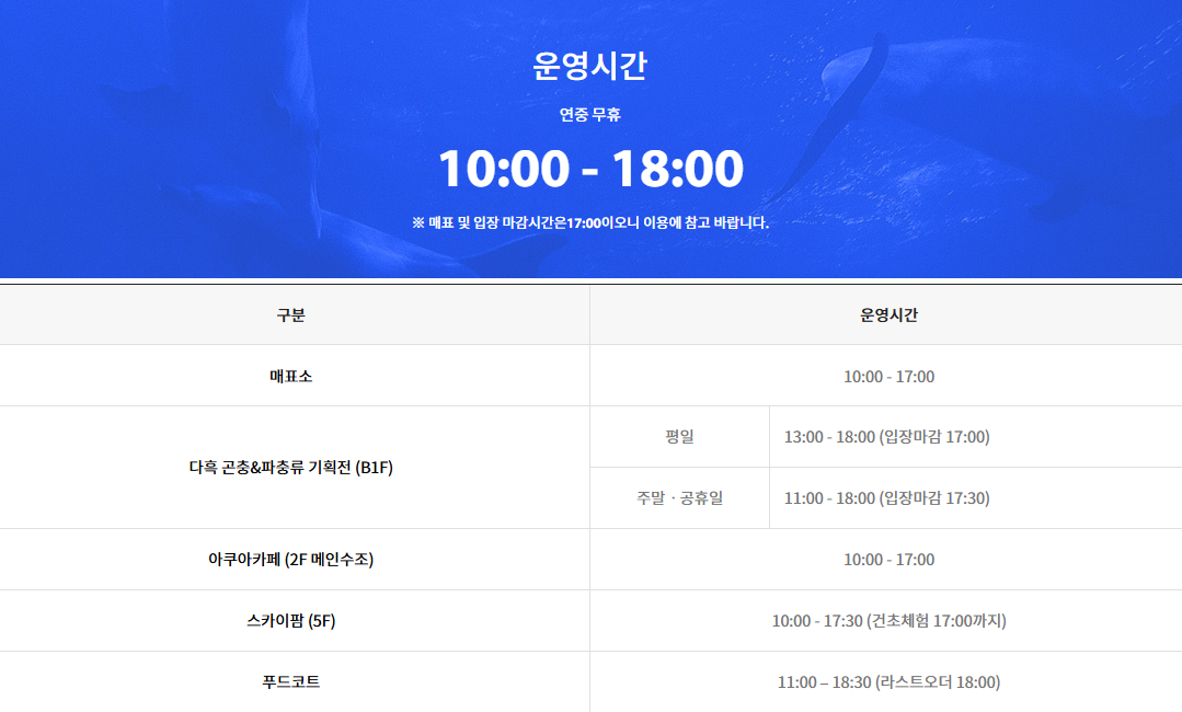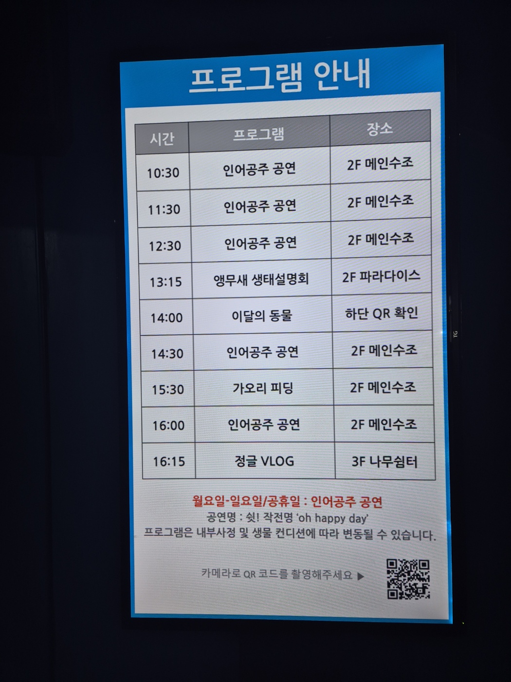 일산 아쿠아플라넷 운영 프로그램 시간대
