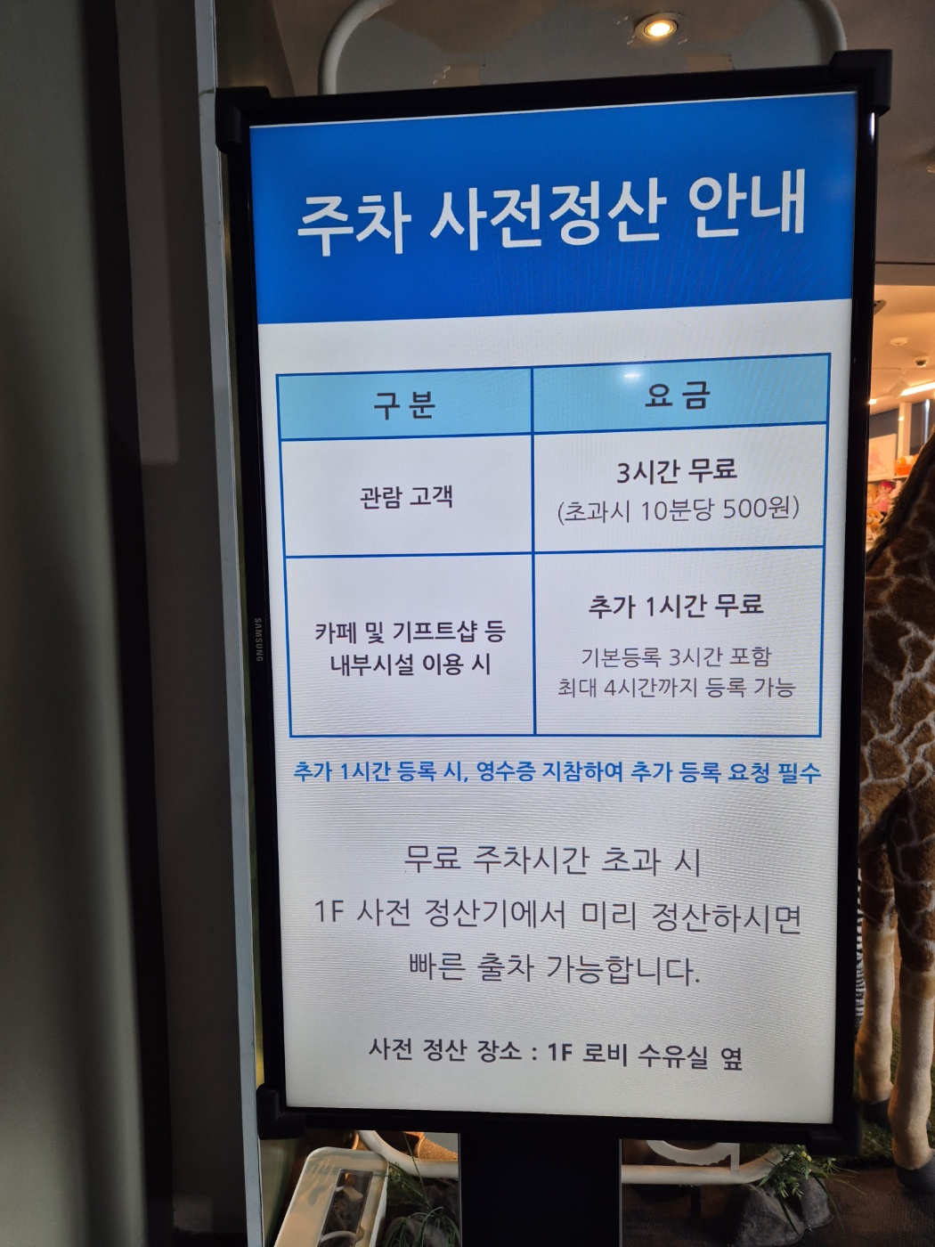 저희는 2시간 정도 구경하고, 나와서 간단한 점심까지 먹었는데도 주차 시간은 충분하더라구요.