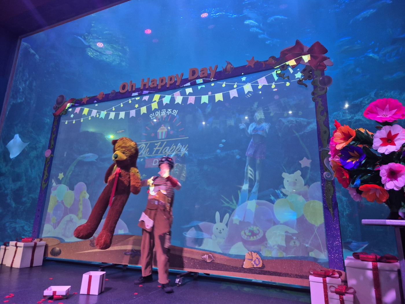 인어공주 공연이 끝나고 그토록 보고싶었던 상어와 가오리, 물고기들을 만나러 갑니다.