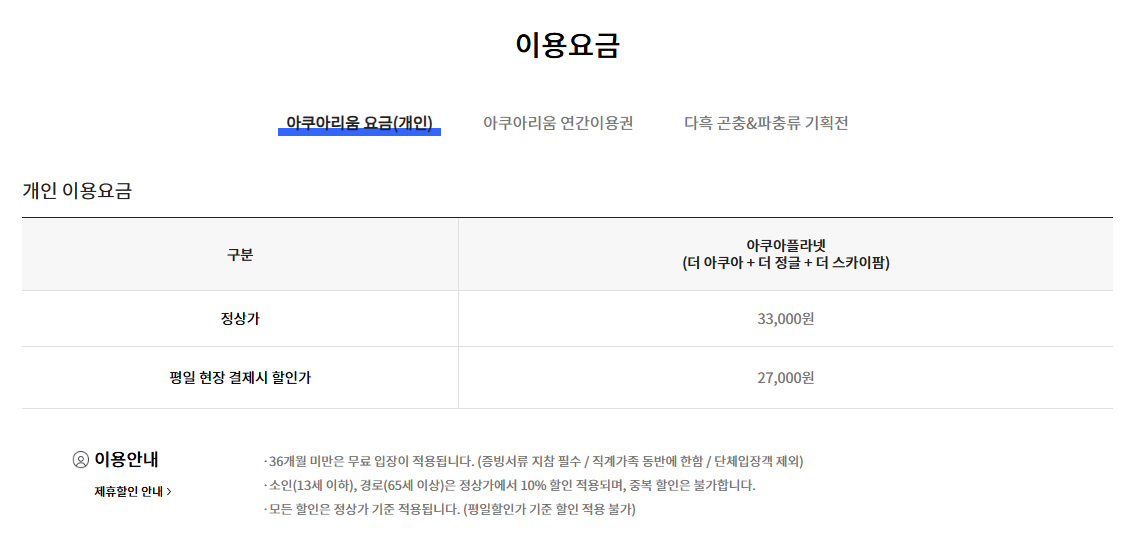 일산 아쿠아플라넷 운영 프로그램 시간대