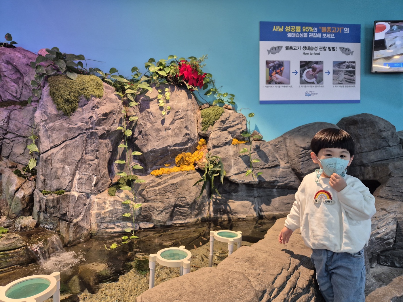 저희 아들은 손을 집어넣고 물고기들이 몰려오니까 겁난다고 손을 확 빼버리더라구요.