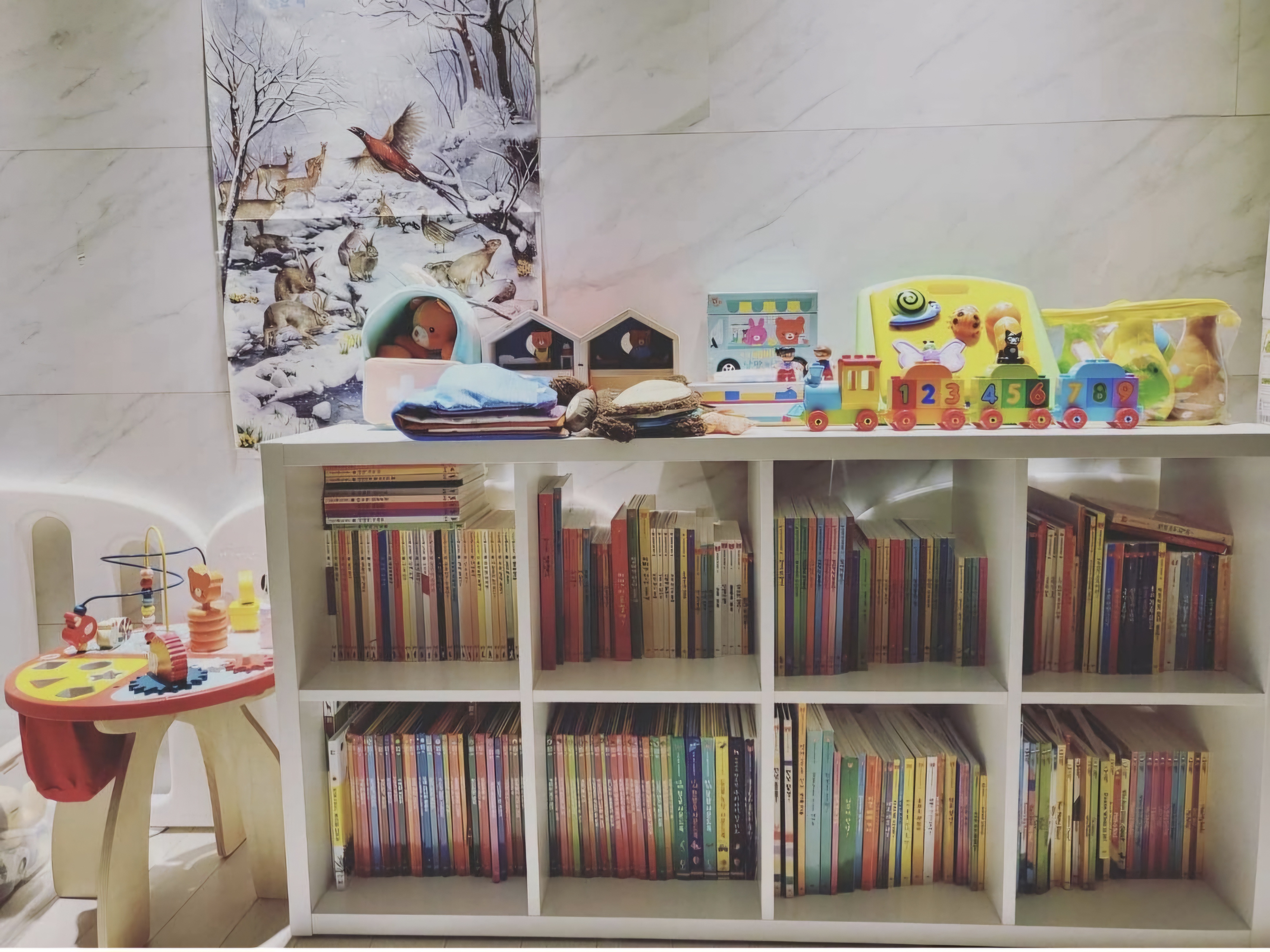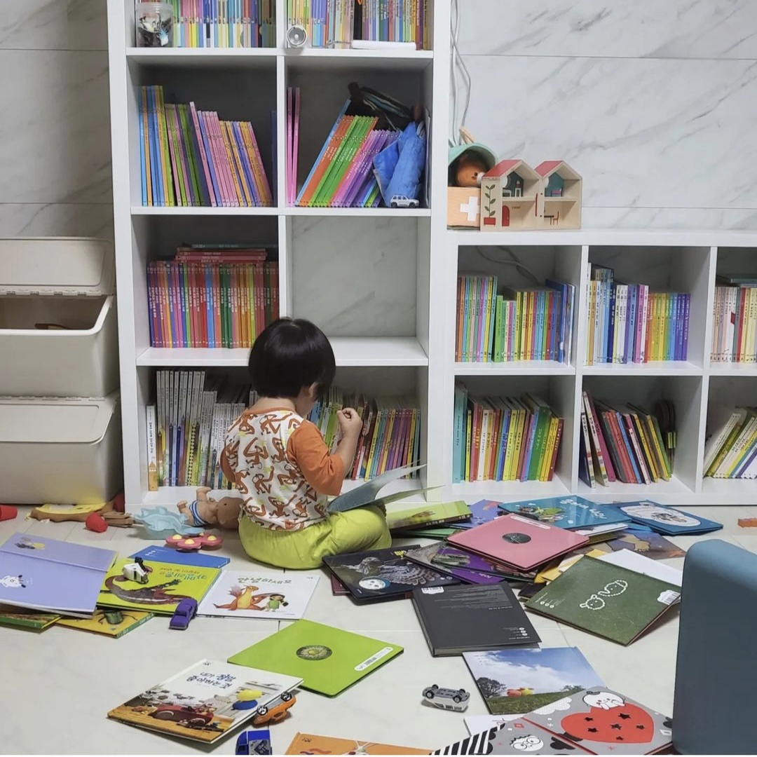 하지만 아이를 위해서는 저런 환경이 더 좋다고 하니, 혹시 우리 아이가 저렇게 책들을 다 꺼내놓고 입으로 물어 뜯기도 하고, 밟고 다니기도 한다면 정리하지 마세요. 안 보는 것 같지만 다 보고 있답니다.
