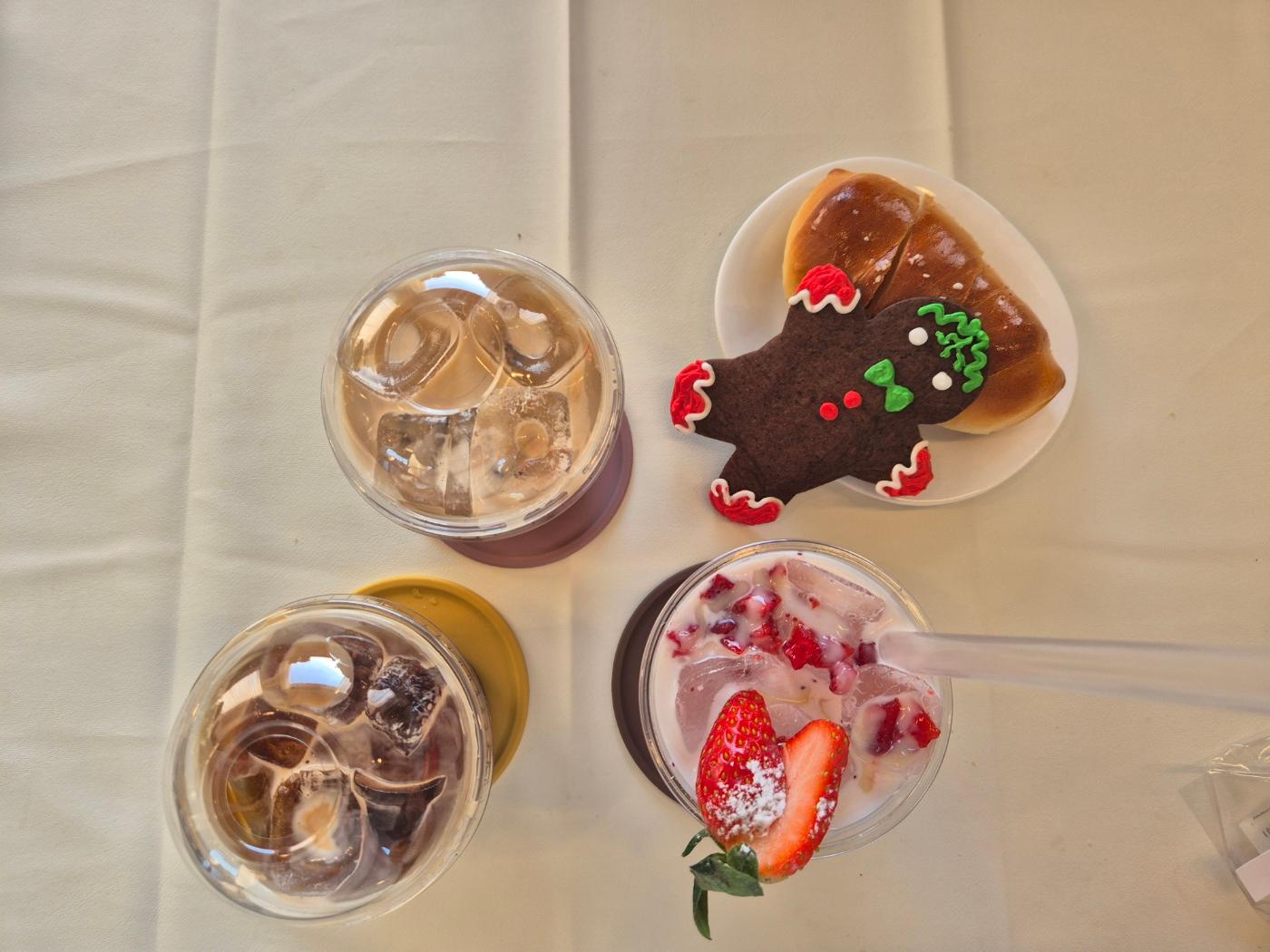 저희는 소금빵과 커피 세트, 그리고 쿠키를 주문했습니다.