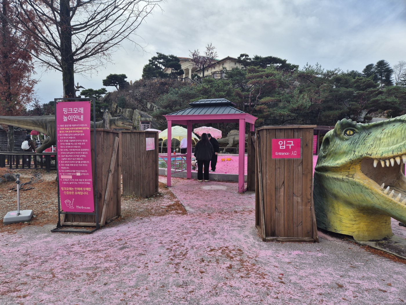 스카이 허브팜이 있는 2번 자리에 핑크모래썰매가 있어요.