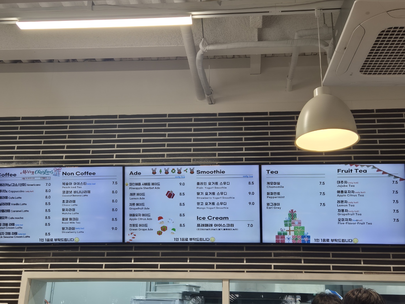 베이커리와 브런치 주문하는 곳은 1층에 있어요.