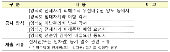매입요청 시 제출서류(대항력이 있는 선순위 임차인)